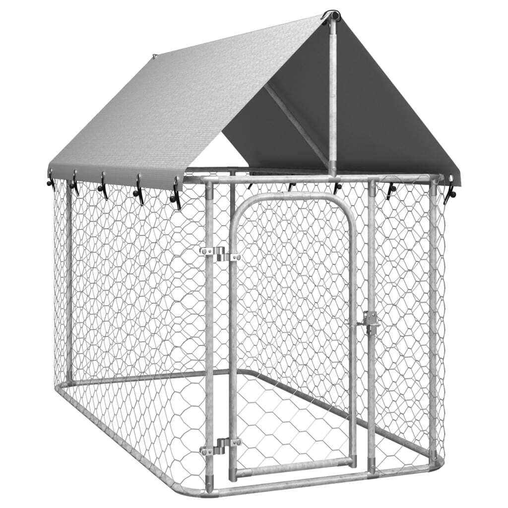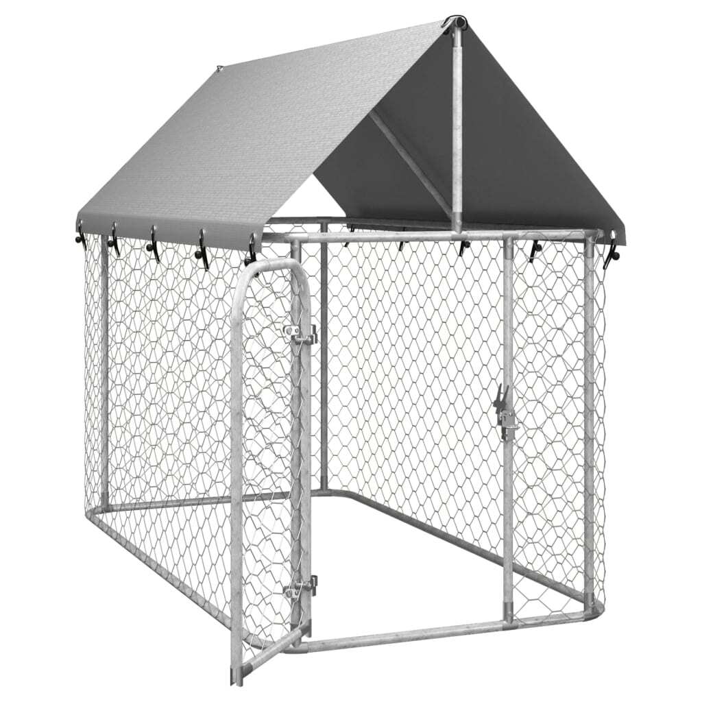 Dog Kennel Silver Galvanized steel, Polyethylene
